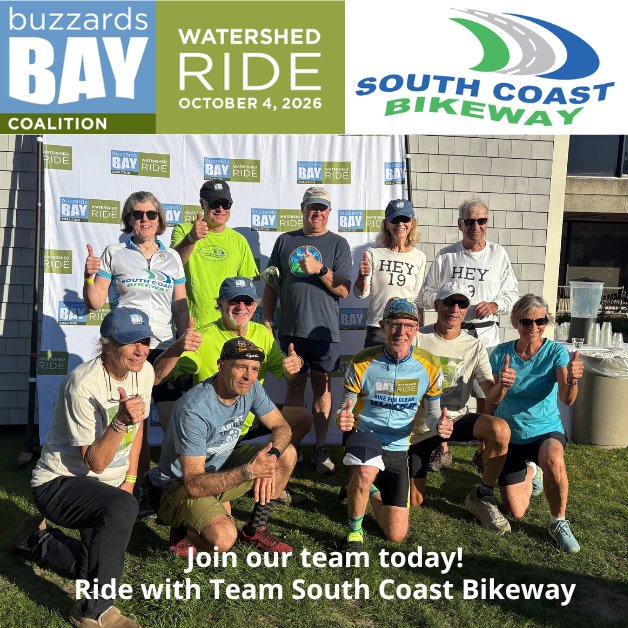 SCBA is a 501 (c) (3) organization whose mission is to assist our member communities in completing their portion of the South Coast Bikeway. In 2025, as the TOP FUNDRAISING TEAM, we raised over $43,800 for clean water and $1300 for the South Coast Bikeway, for over $135,665 for the Buzzards Bay Coalition over the last 10 years. Let’s make this our best year yet by supporting our two causes.